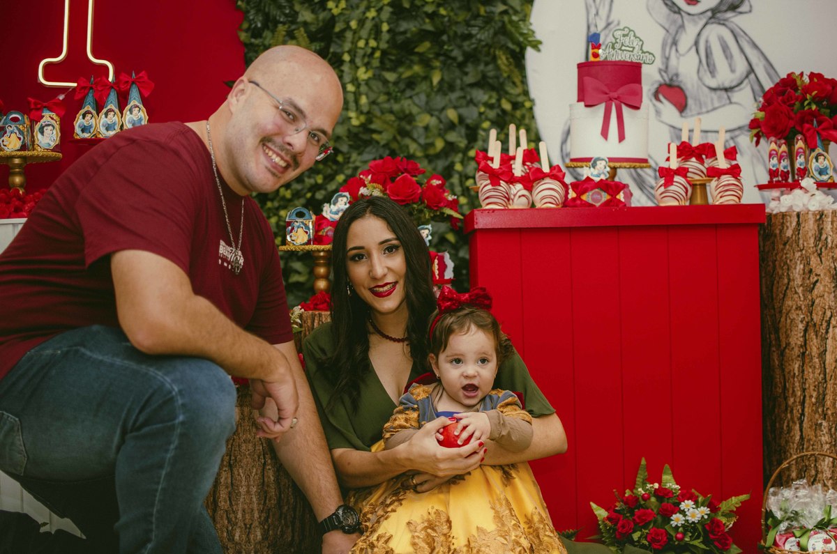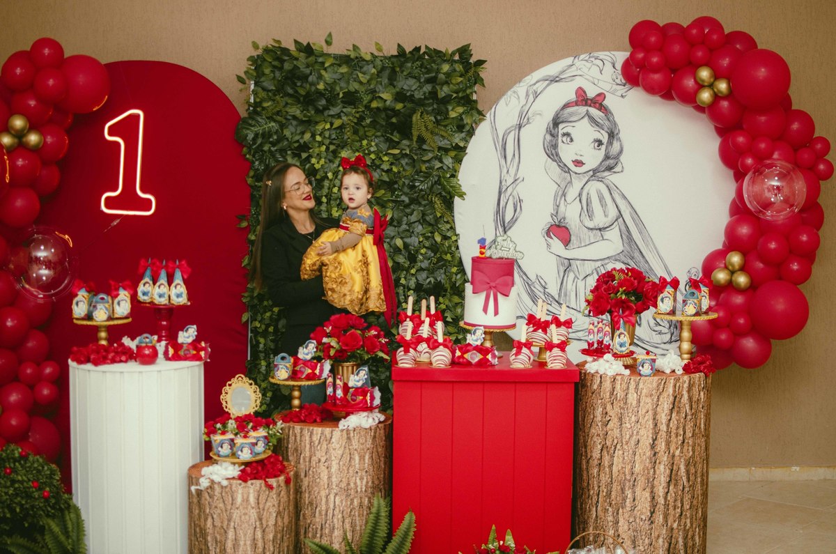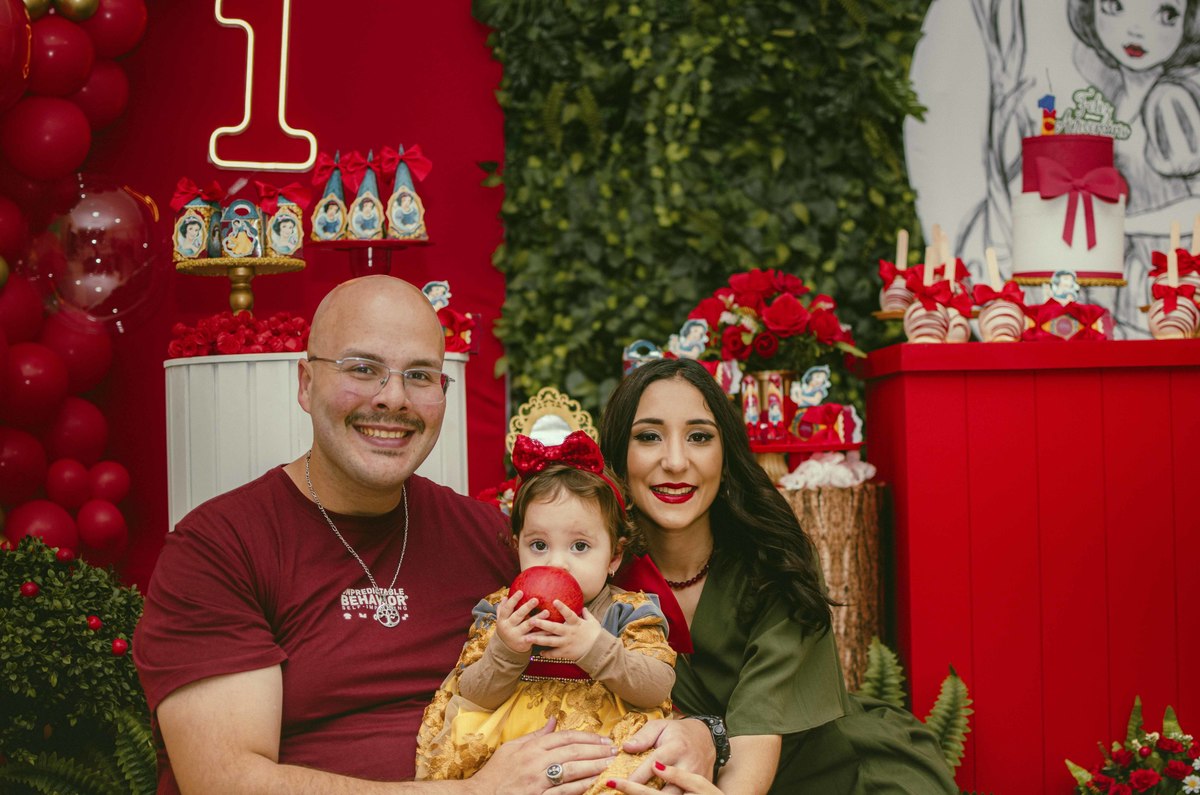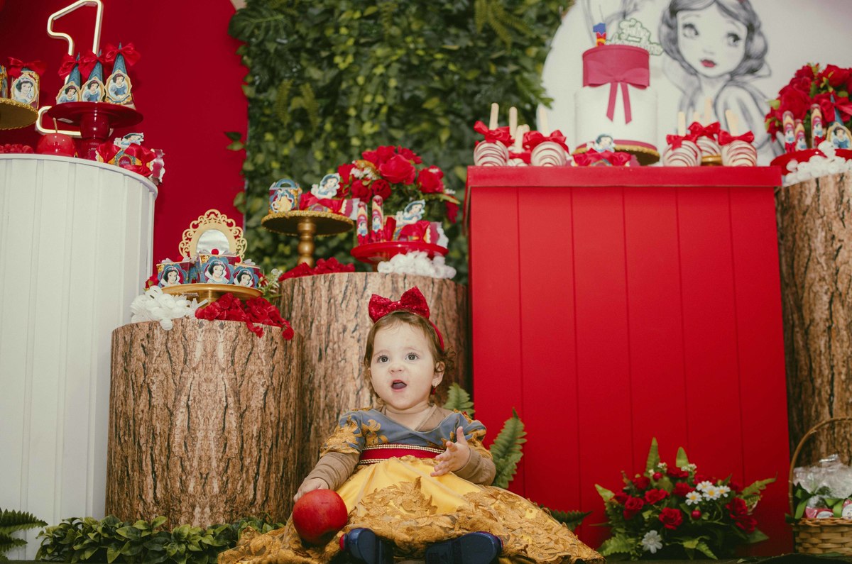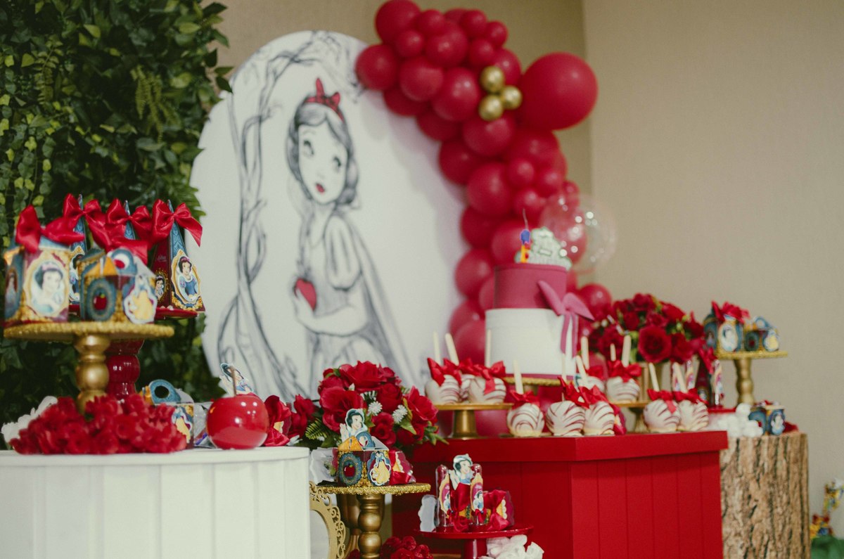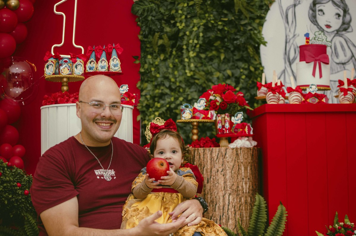 Baby's 30/Maio/2025 Mileinha 15 visualizações 0 curtidas Festinha de aniversário da pequena Milena e sua família com temática de Branca de neve e os 7 anões