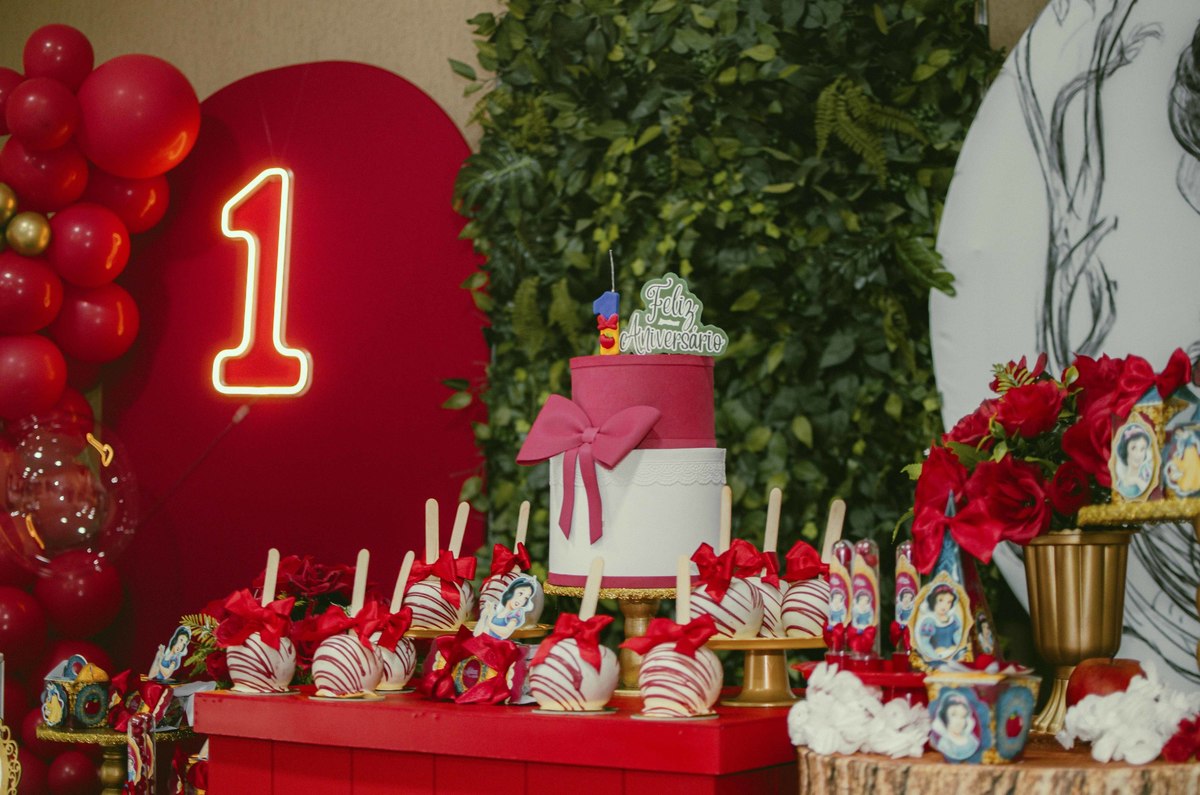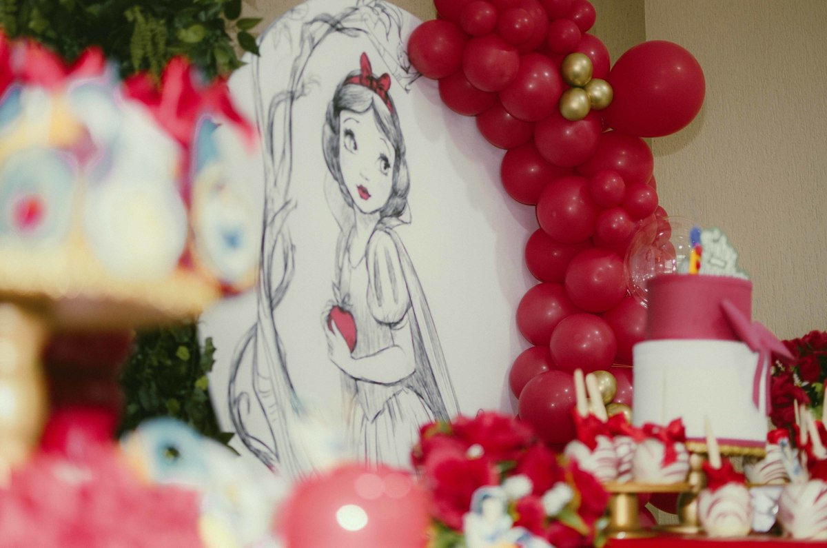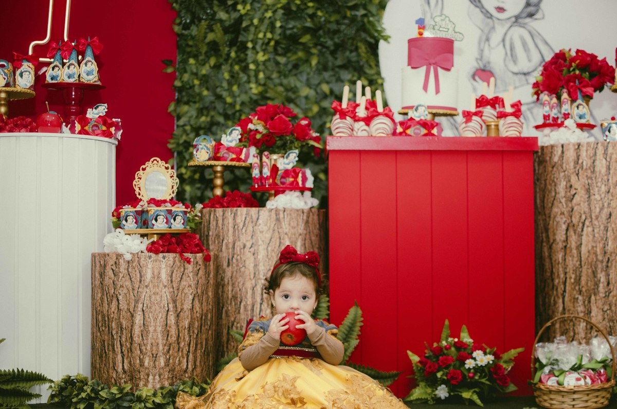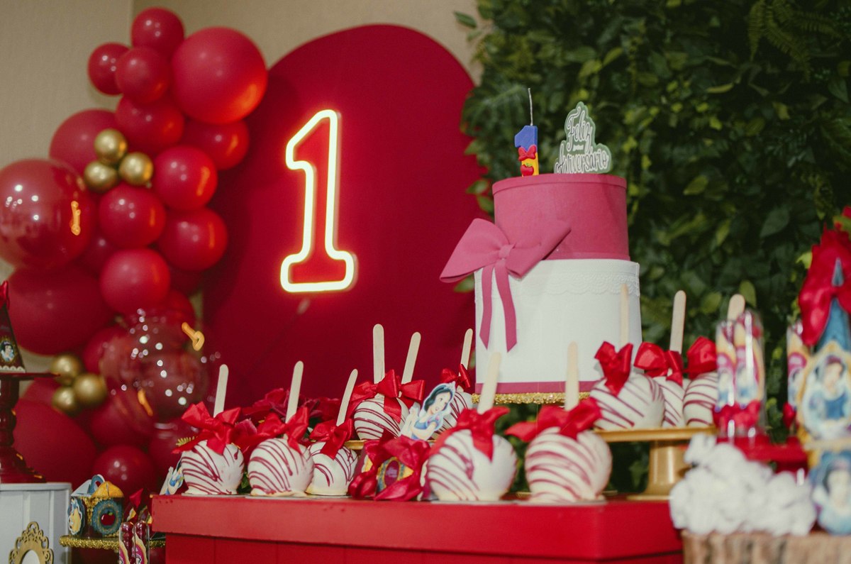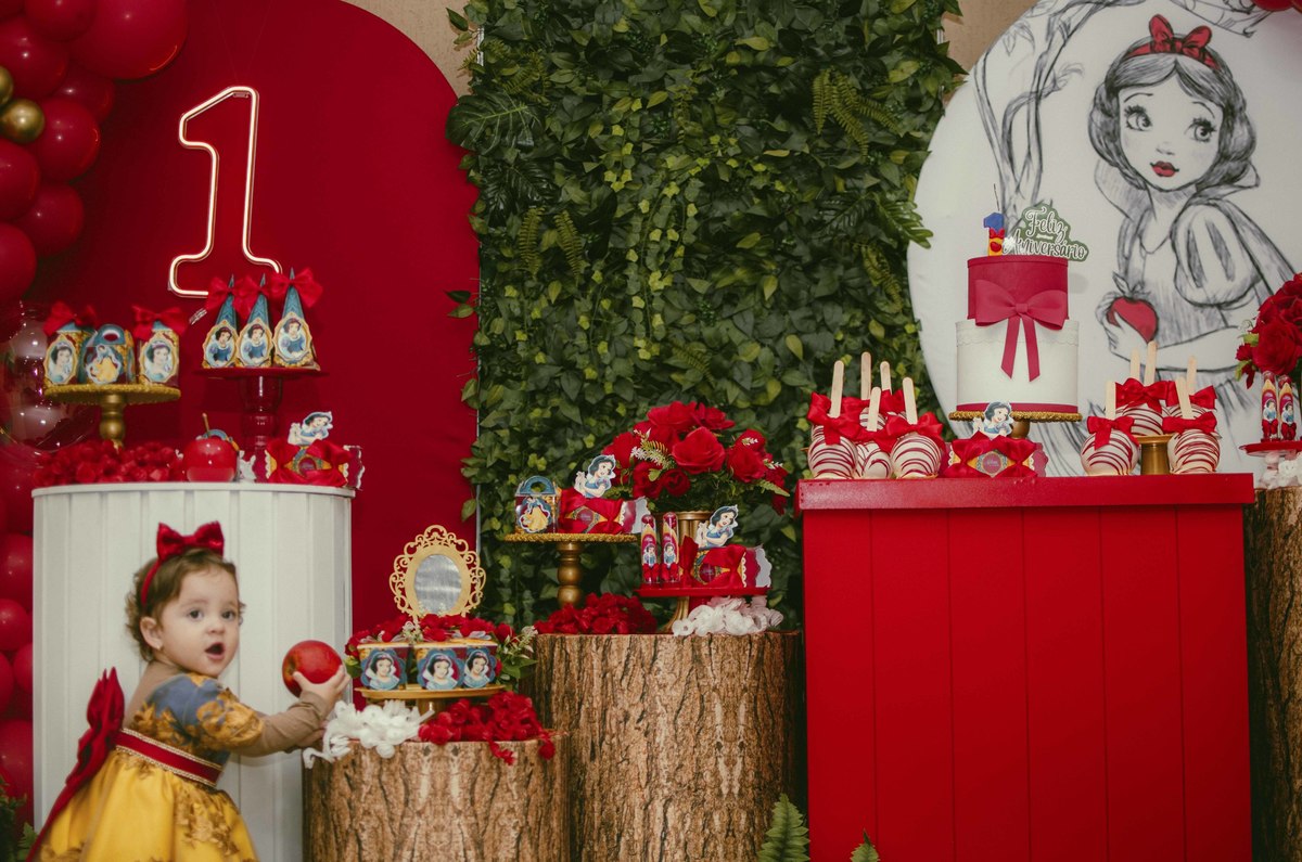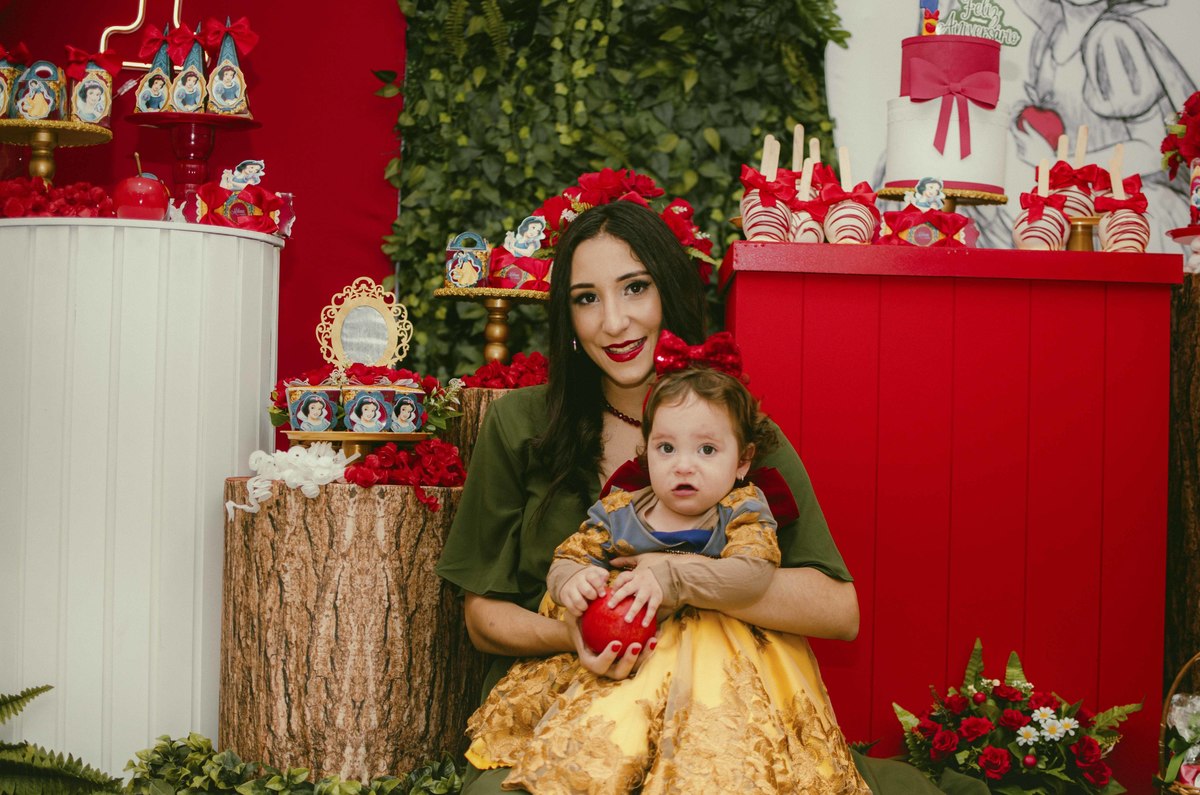 Baby's 30/Maio/2025 Mileinha 15 visualizações 0 curtidas Festinha de aniversário da pequena Milena e sua família com temática de Branca de neve e os 7 anões