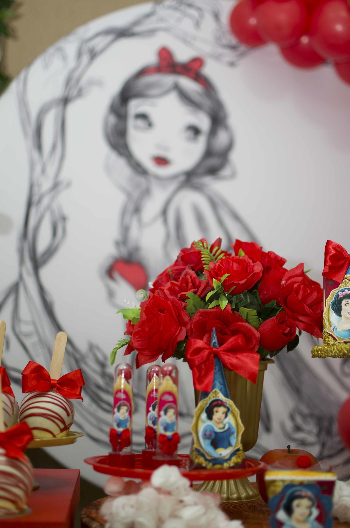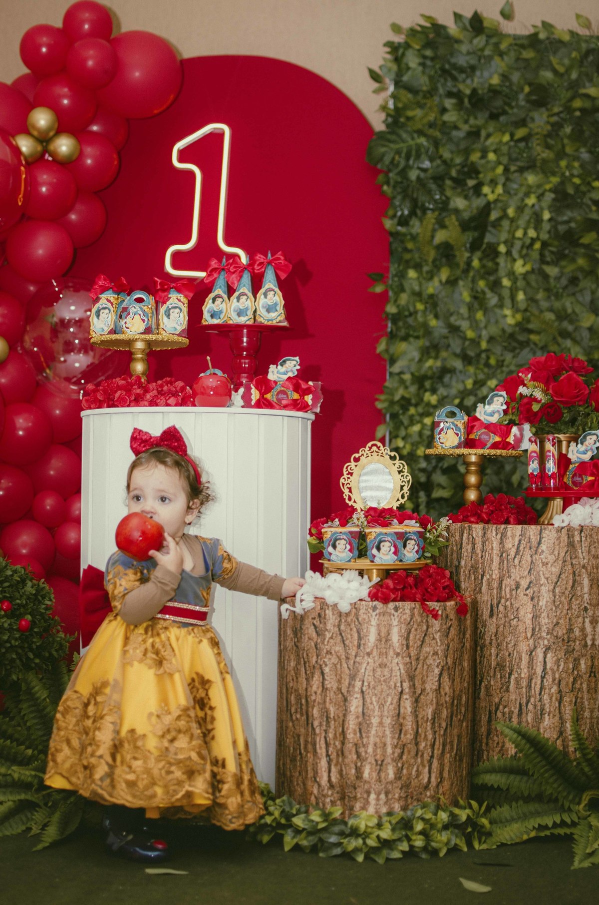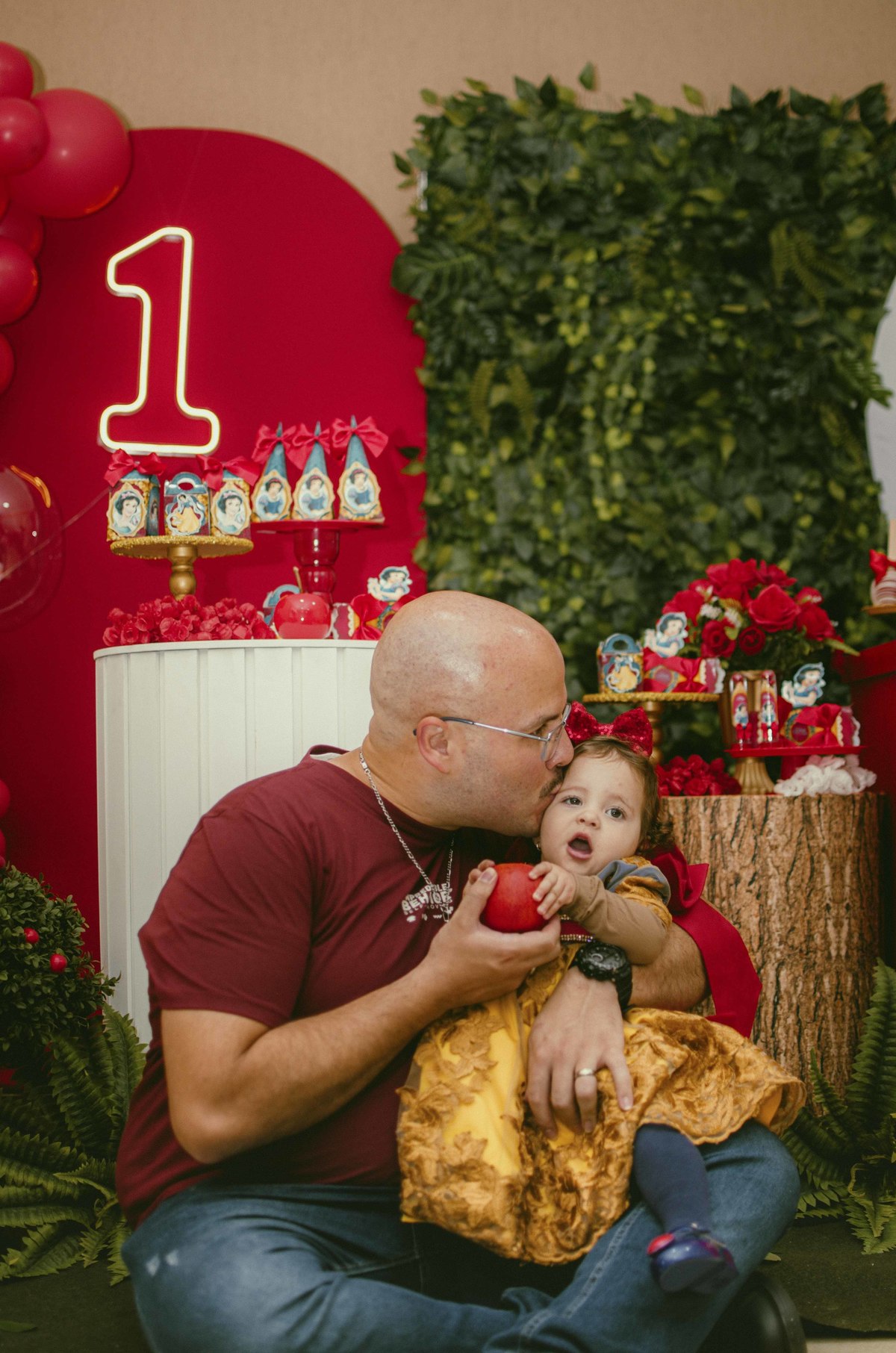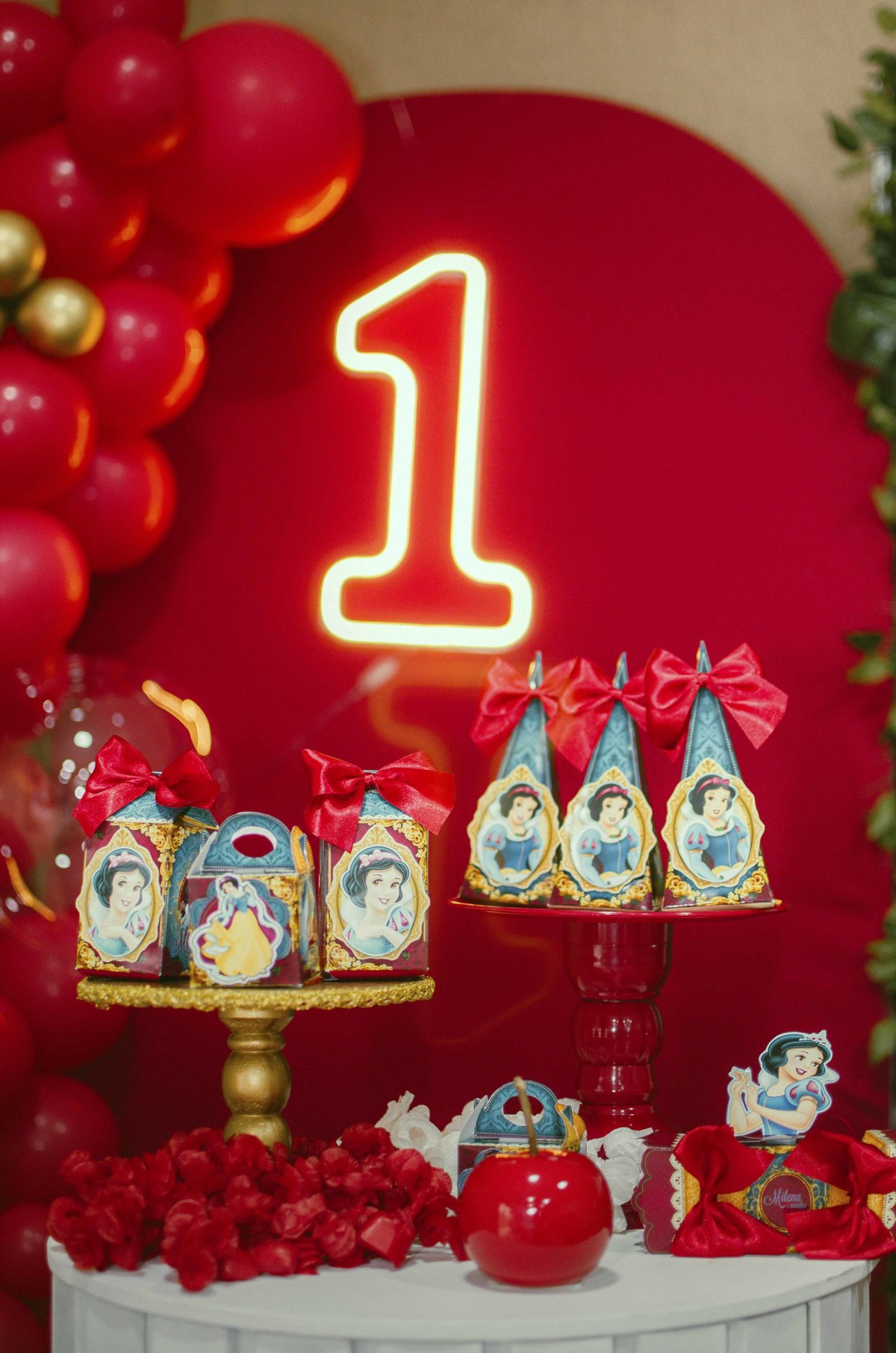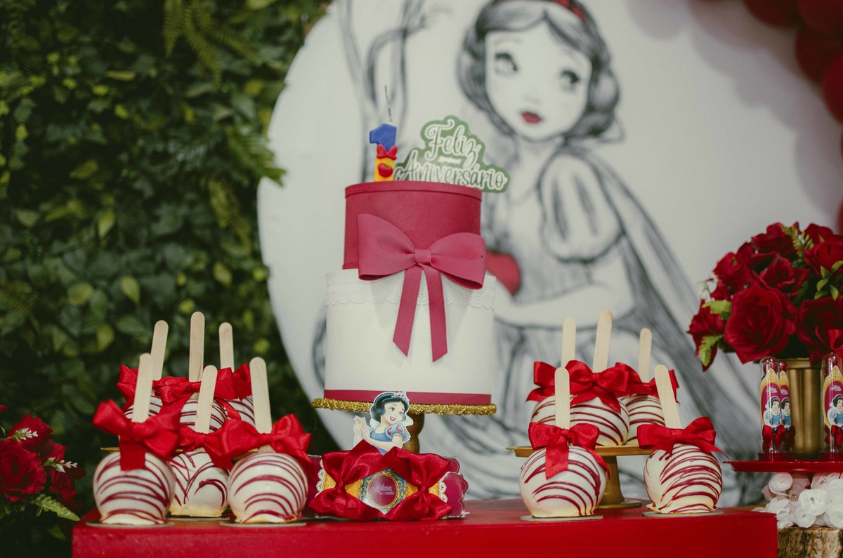 Baby's 30/Maio/2025 Mileinha 15 visualizações 0 curtidas Festinha de aniversário da pequena Milena e sua família com temática de Branca de neve e os 7 anões